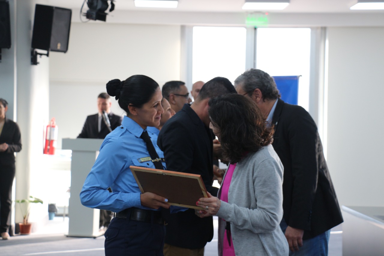 Participaron del mismo la Ministra de Seguridad y Justicia Gloria Zalazar; el Ministro de Educación, Cultura, Ciencia y Tecnología Aldo Lineras; el Jefe de Policía Comisario General ® Ariel Acuña, y nuestra Directora del IESFPySP la Lic. en Seg. Pública y Ciudadana Comisario Mayor Silvia García, quienes hicieron entrega de los diplomas a los egresados con mejor promedio.