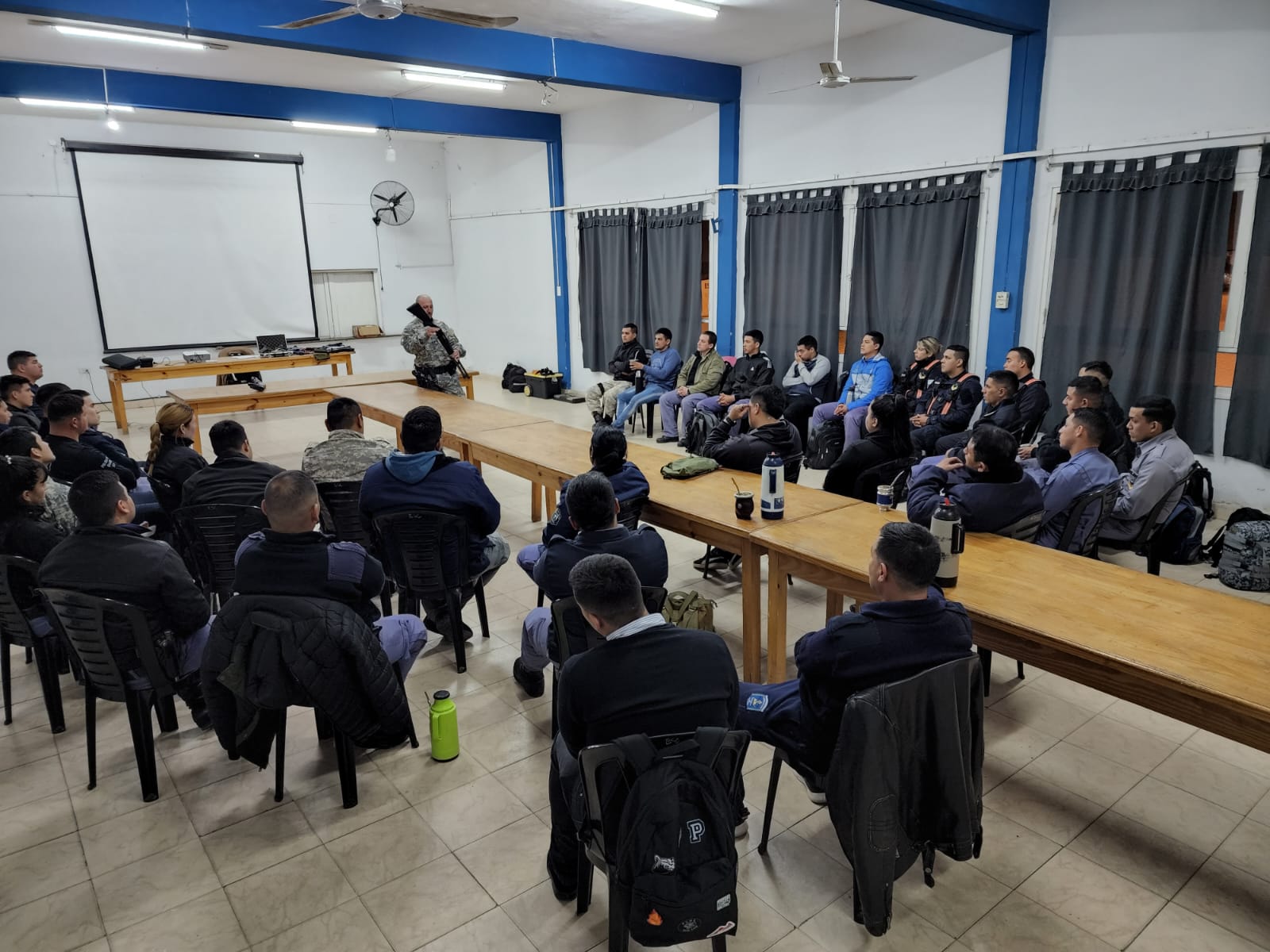 El dictado se desarrolló en instalaciones del Instituto de Educación Superior de Formación Policial y Seguridad Pública, y es destinada a la totalidad de funcionarios policiales con prestación de servicio en Unidades dependientes del área Metropolitana e Interior, subdivididos en grupos para clase práctica. La capacitación proseguirá con sus clases prácticas los días 05 y 07 de julio del presente año.