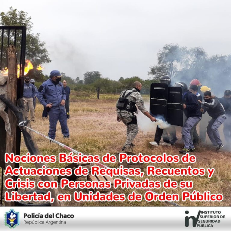 El día 14 de Julio desde las 15:00 hasta las 18:00, conforme disposición N° 1674/2021 de Jefatura de Policía, se desarrolló la Jornada de Capacitación temática: “Nociones básicas de protocolos de actuaciones de requisas, recuentos y crisis con personas privadas de su libertad en unidad de orden público”.