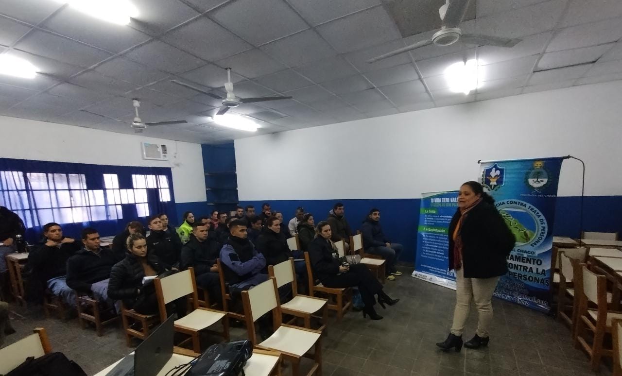 Se trataron temas referidos a la temática, como introducción a la investigación delictiva, con especial hincapié en los contenidos de la “Guía de Procedimientos Comunes para la Detección de Posibles Víctimas del Delito de Trata de Personas en la Modalidad de Explotación Laboral”, generando de esta manera tanto la preparación de los funcionarios policiales en los distintos puntos de la Provincia como así la coordinación a través del Departamento Lucha Contra La Trata de Personas en la detección de ilícitos relacionados. El dictado estuvo a cargo de la Sra. Jefe del Departamento Lucha Contra la Trata de Personas Comisario Inspector Sara Elisabeth Aguilera, en disertación conjunta con el Sr. Jefe de la División Prevención y Coordinación Interinstitucional Subcomisario César Germán Sotelo, y la Sra. Jefe División Investigación e Inteligencia Oficial Principal Erica Marlene Román.